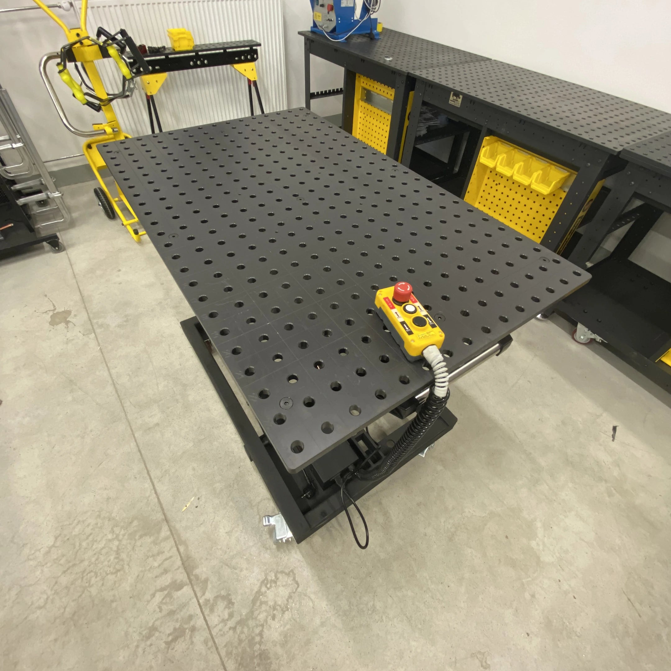 Masă de sudură cu ridicare electro-hidraulică 1200 x 750 mm sistem 16 mm Rhino Cart TDESL12075 este soluția potrivită dacă vrei control mai bun, eficiență și un mod de lucru mai sănătos în atelier.